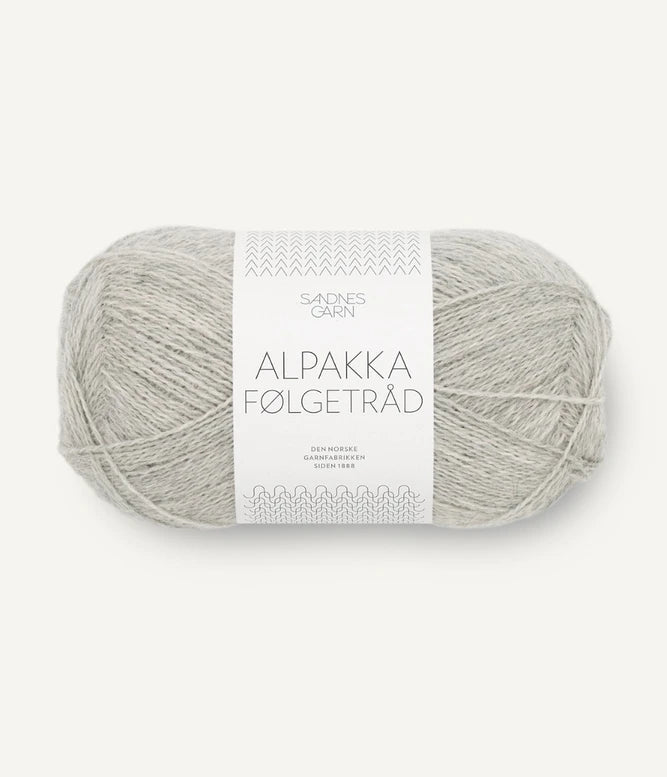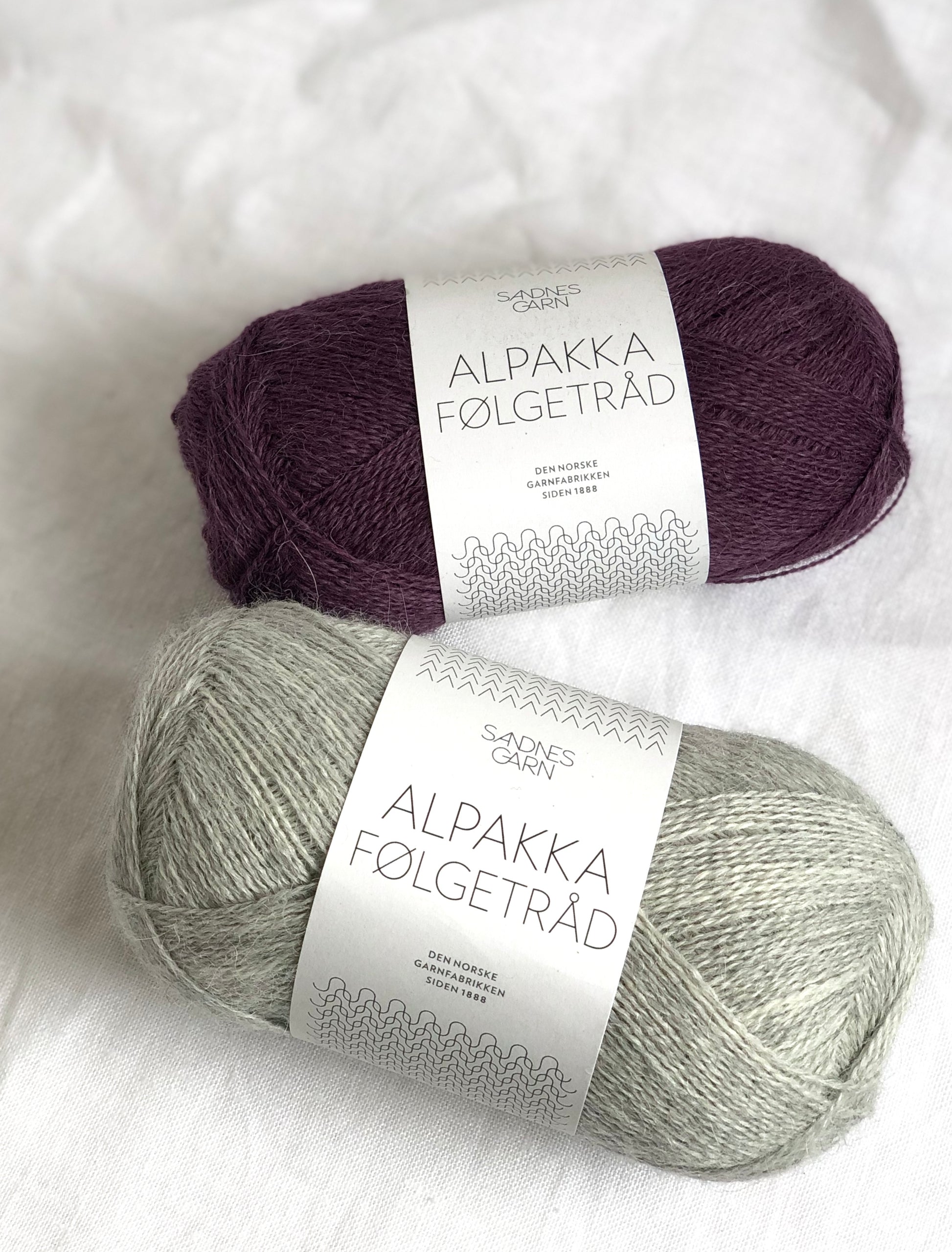 Alpakka Følgetrad is a 'hold with' yarn and can be used in place of Tynn Silk Mohair, Knitting for Olive Soft Silk Mohair and Kremke Silky Kid where a bit of extra fluff is not required. It can be used for adding some stability, or for adding depth of colour to a project. It is super soft when held double too, and holding it double knits to around a sparse 4ply weight.